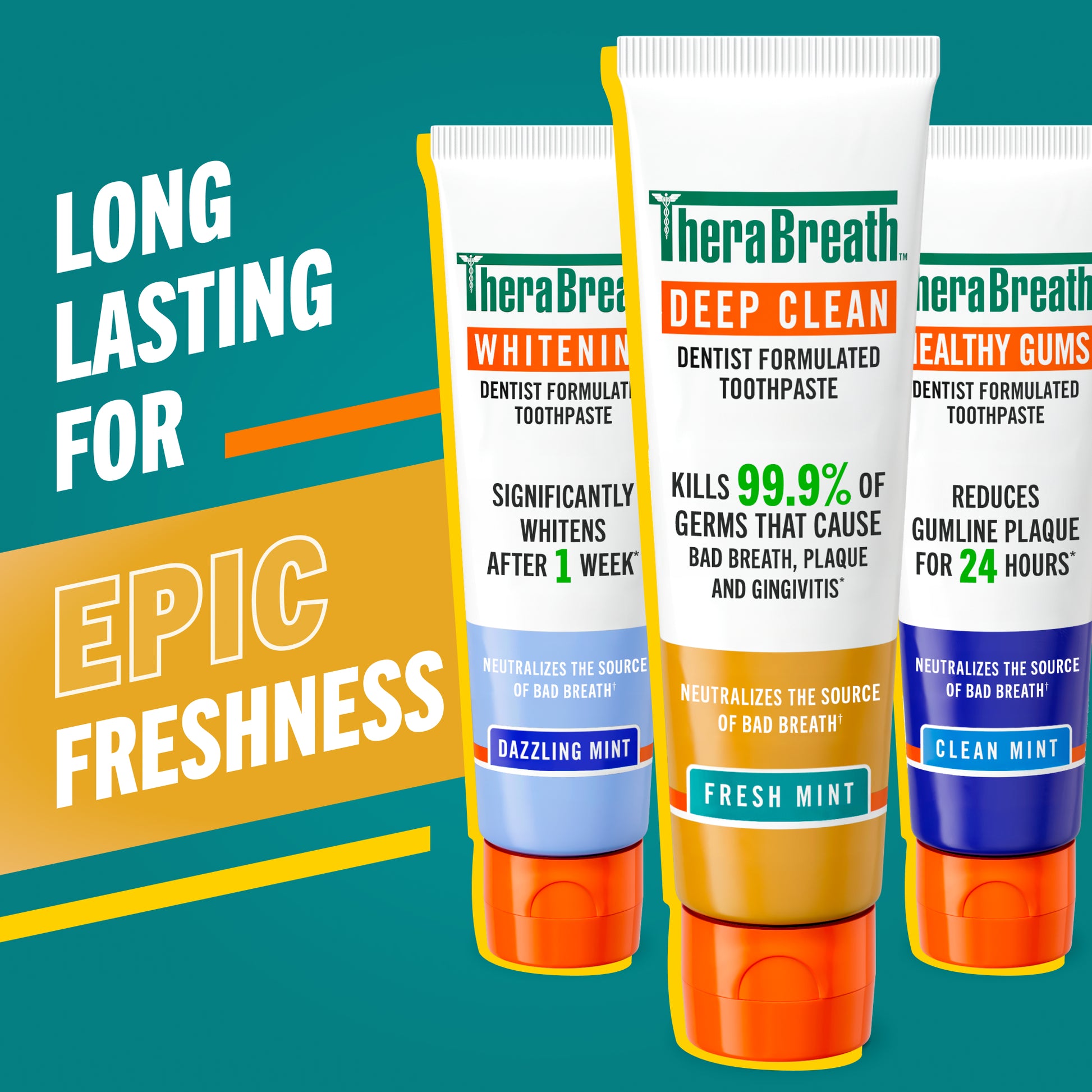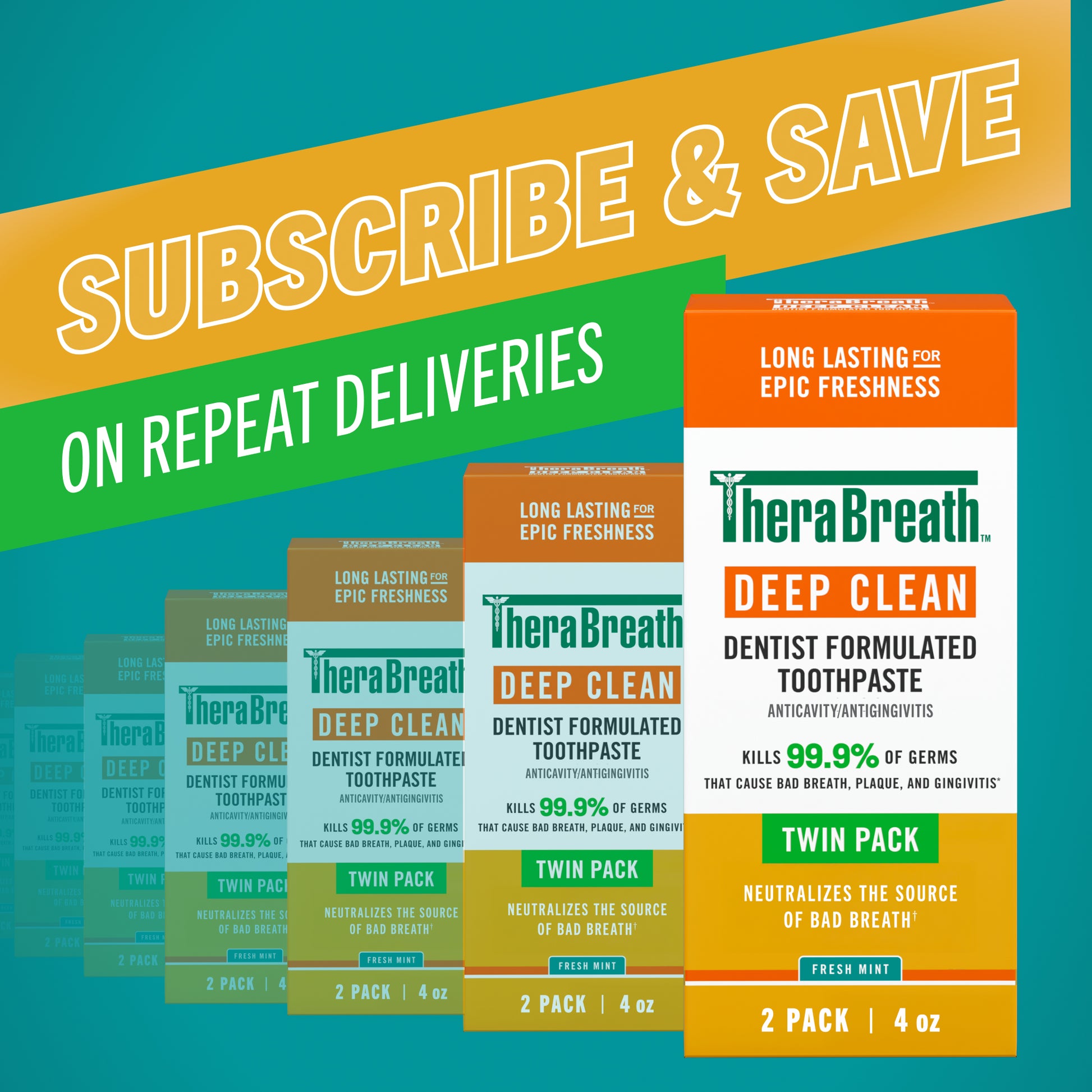 TheraBreath Deep Clean Toothpaste, Helps Fight Bad Breath, Fresh Mint, 4 oz, 2-Pack
