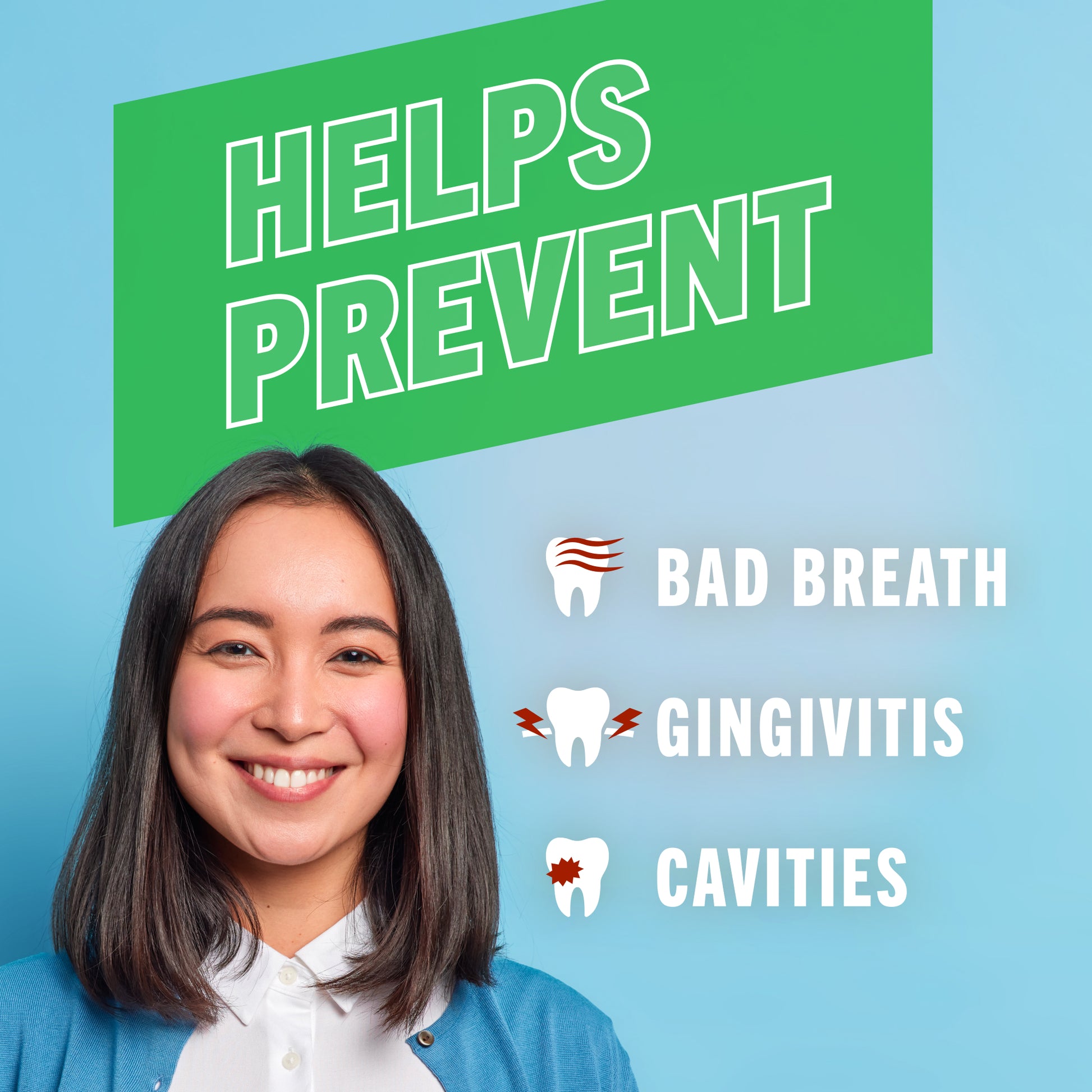 - Kills 99.9% of germs that cause bad breath, plaque, and gingivitis (1)